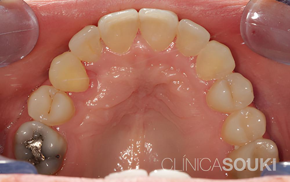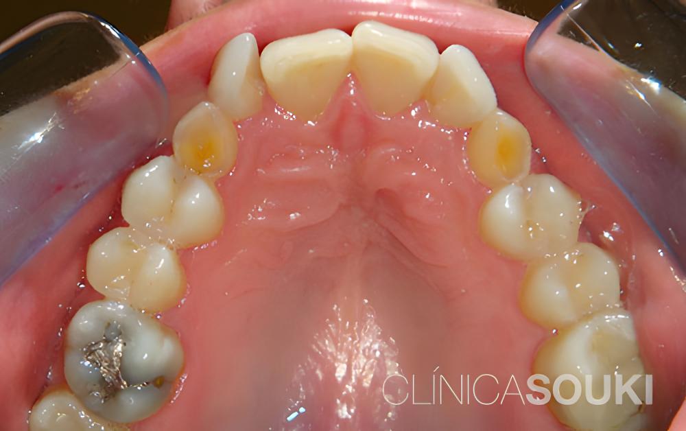 35 years old patient with baby canine teeth. Our orthodontist, Dr. Vilaplana, successfully managed to reposition the permanent canines in the upper arch.